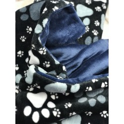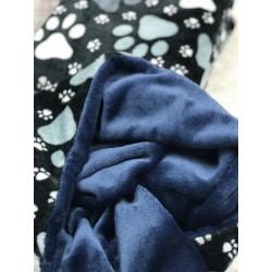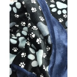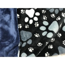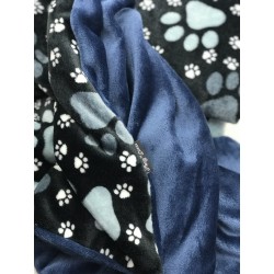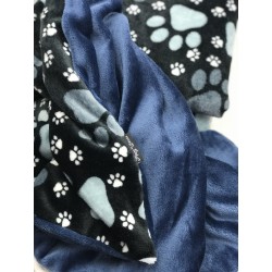 Kuschelweiche Hundedecke aus Wellness Fleece mit Tatzenmotiv und eine komplette blaue Seite.
